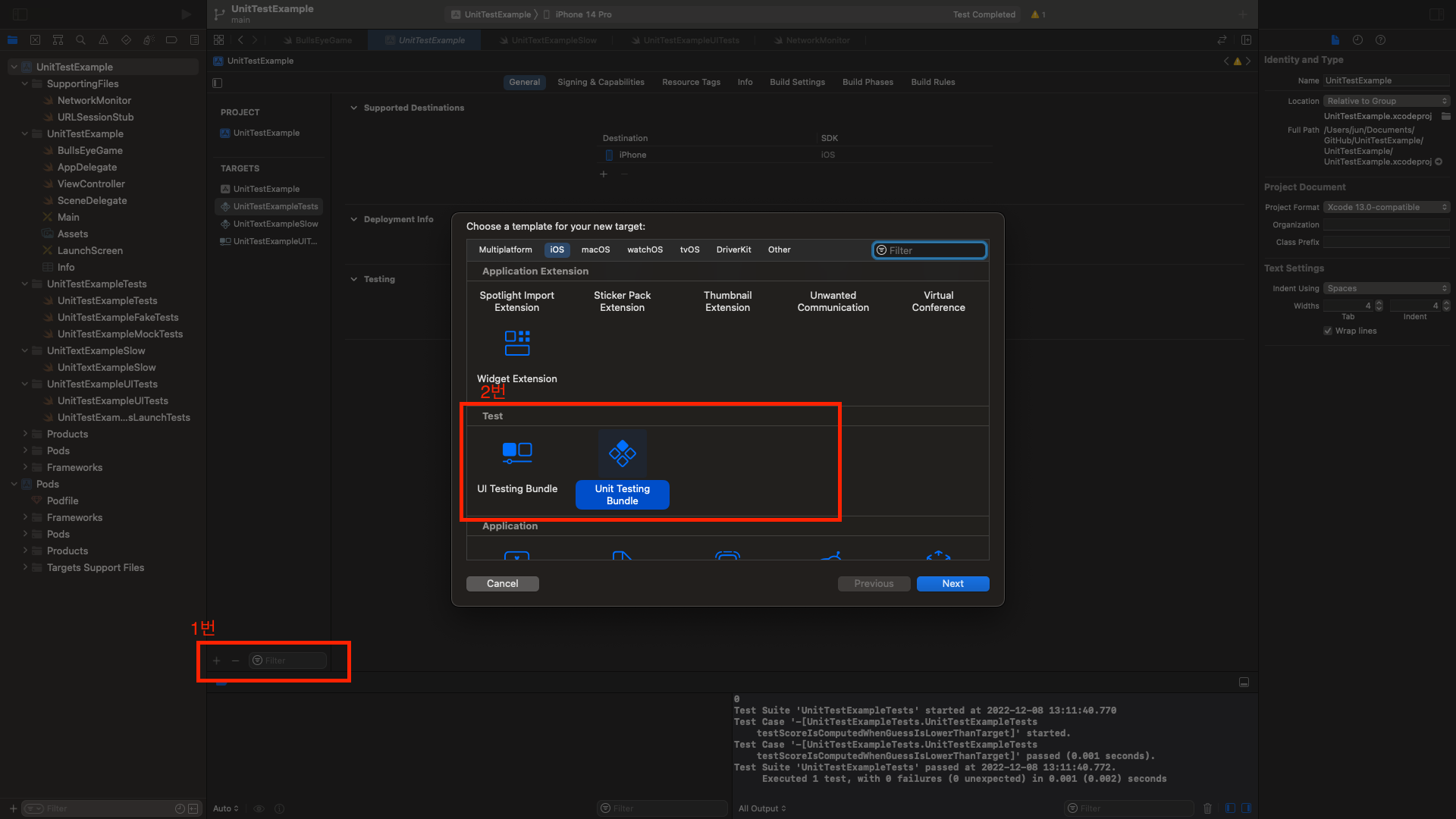 - iOS 섹션에 Unit Testing Bundle 추가
