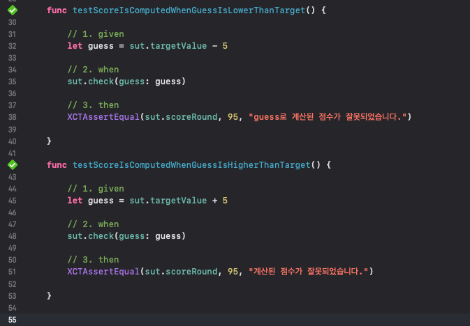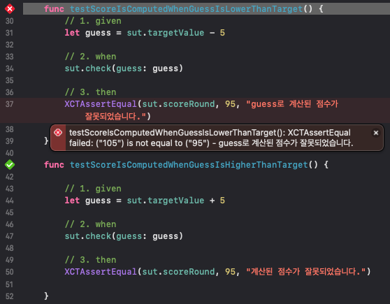 - XCTAssertEqual를 통해 해당 테스트에서 원하는 값이 나왔는지 확인한다.